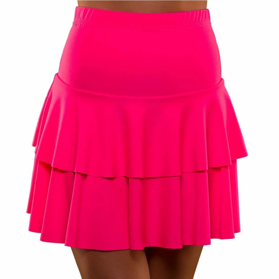 Popular with cheerleaders this brightly coloured layered short skirt is sure to get you noticed.