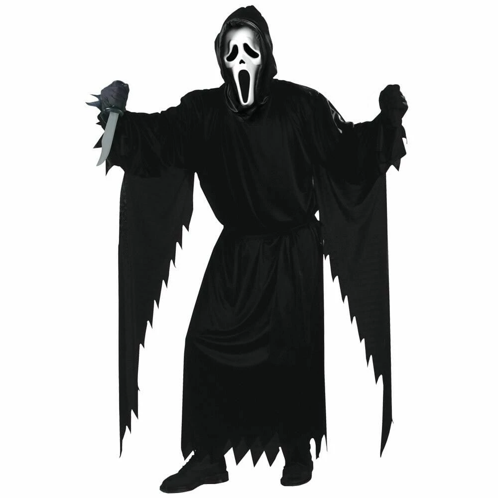 Your costume includes hooded rope with draped sleeves, ghost face mask and belt.